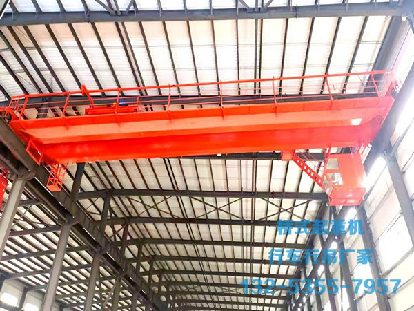 跨度过大时,除主梁承载压力增加,大车运行的稳定性也会下降。例如跨度超过 30 米的行车,若起重量仍选 20 吨,运行中易因两侧车轮受力不均出现 “跑偏”,甚至引发主梁振动,增加制动失灵或吊物晃动的风险。因此,大跨度(通常>24 米)行车会通过 “双主梁结构”“加重端梁配重” 等设计提升稳定性,同时适当降低起重量上限。