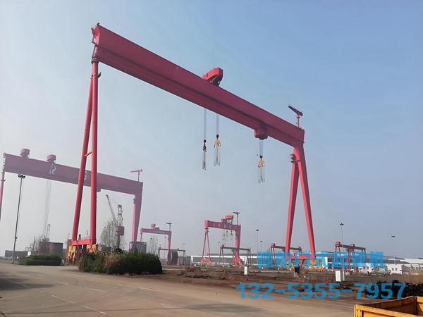 造船厂(适配 50 吨以上龙门吊):核心作业区域宽度为 20-30 米,可容纳船体分段存放及相关加工工位布局;安全冗余预留 5-8 米,因船体分段尺寸大、重量重,需更大空间应对吊装时的姿态调整,同时避免碰撞车间设备或其他船体构件;推荐跨度为 25-38 米,且需定制刚性更强的主梁(如箱型主梁、桁架主梁),确保大跨度下设备运行的稳定性与吊装精度。