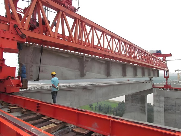 防风锚定与抗风:① 作业间歇或停机时,操作员启动防风锚定器,将架桥机行走轮与桥面轨道或桥墩预埋锚点锁紧,防止大风推动整机滑移;② 大跨度架桥机额外配备抗风拉杆,一端连接主梁,一端固定在桥墩上,抵消横向风载对主梁的推力,避免主梁发生侧向弯曲变形;③ 部分机型的支腿配备防滑轮组,增大与桥面的摩擦力,进一步提升抗风稳定性。