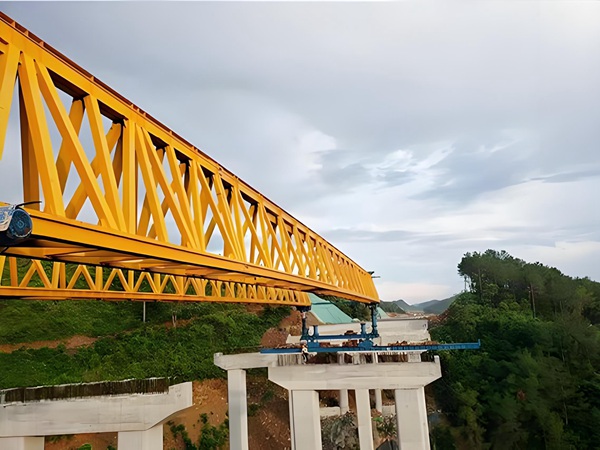 跨径适配性有限,受主梁高度限制:主梁位于梁体上方,架梁时需预留梁体起吊、纵移的竖向空间,无法适配大跨径梁体(常规适配 20-40m 跨径,最大不超过 50m),若跨径过大,主梁需加高、加跨,会导致设备自重剧增,降低稳定性。